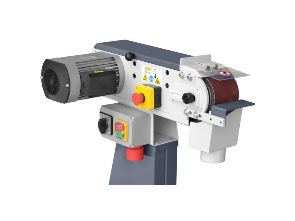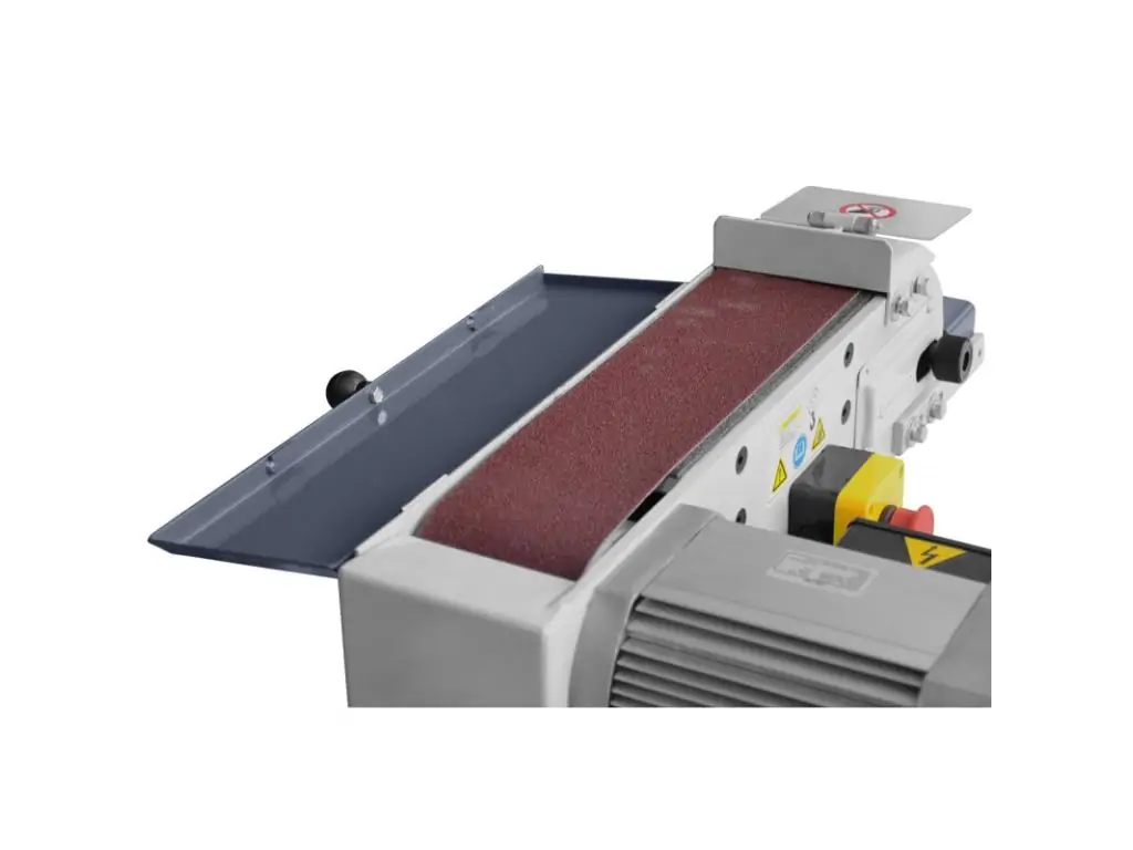Універсальний шліфувальний верстат по металу в комплекті з підставкою. Має дві швидкості стрічки 9,5/19 м/с. Він вирізняється стабільною та перевіреною конструкцією та зручністю використання. Розміри шліфувальної стрічки 100 х 1220 мм.