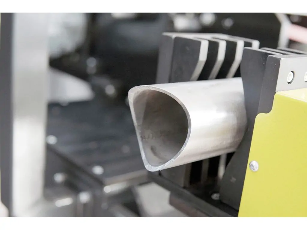 Завдяки обробляючому барабану, відповідний отвір в залежності від діаметра труби і профілю.