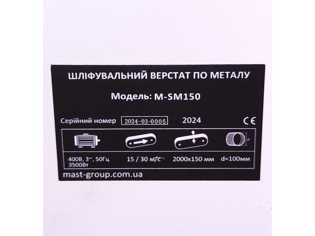 Оснащений двигуном потужністю 4 кВт з високим крутним моментом, який забезпечує продуктивну роботу на 2 швидкостях - 15 і 30 м/с. Верстат має 2 робочі зони - спереду і зверху. Шліфувальна голова може змінювати кут нахилу відносно до основи. Шліфувальна стрічка переміщується по роликах з гумовим покриттям. Графітова підкладка під стрічкою зменшує паразитне тертя. Міцна конструкція з листової сталі забезпечує стабільність роботи навіть при високих навантаженнях. Шліфувальний верстат MAST Metalltechnik M-SM150 й інші високоякісні верстати для обробки металу доступні до замовлення на нашому сайті.