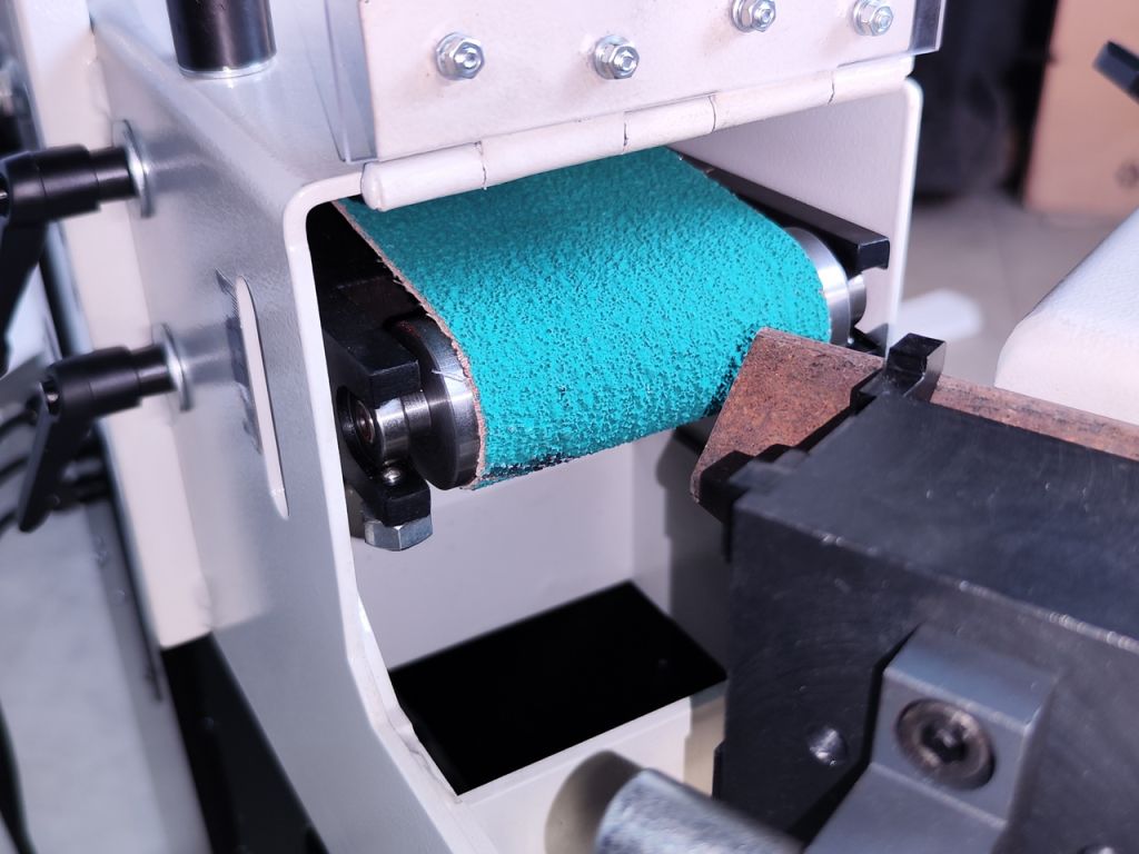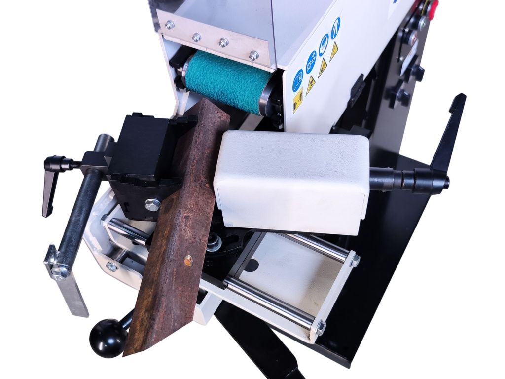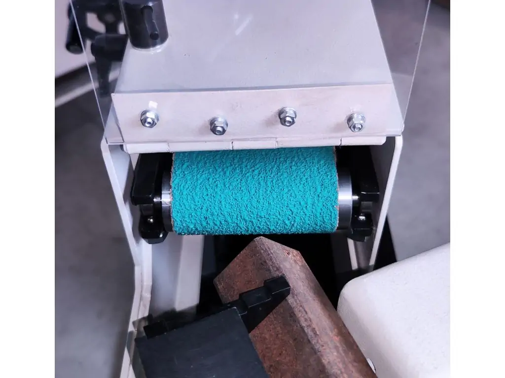 - Робоча зона на лицьовій стороні, призначена для шліфування металевих труб і профілів, має вбудовану опору для встановлення додаткових шліфувальних роликів різного діаметру
