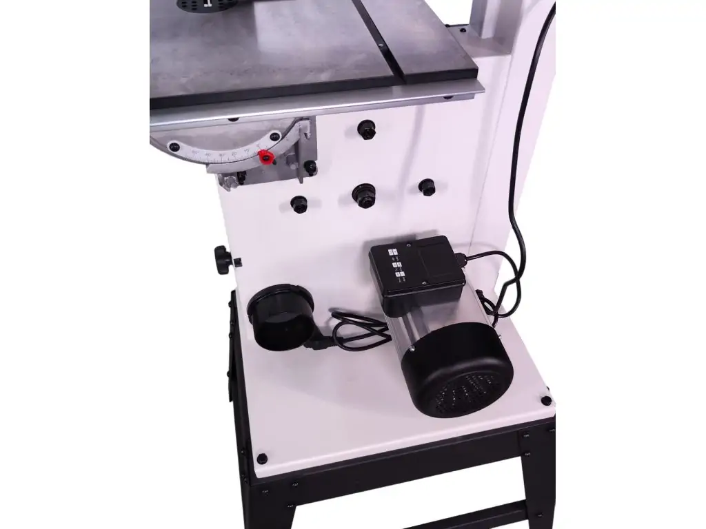 Верстат оснащений індукційним двигуном потужністю 1 кВт, який забезпечує ефективну роботу на двох швидкостях - 7 і 14 м/с. Конструкція з листового металу стійка і міцна, робочий стіл і шківи суцільнолиті, що гарантує стабільність і точність робочого процесу. Нахил столу під кутом до 45 градусів дозволяє якісно здійснювати різи різної складності. Є два виходи під аспірацію. Замовити MAST Holztechnik H-BS350 ви можете через сайт деревообробне обладнання Україна KMA.UA.