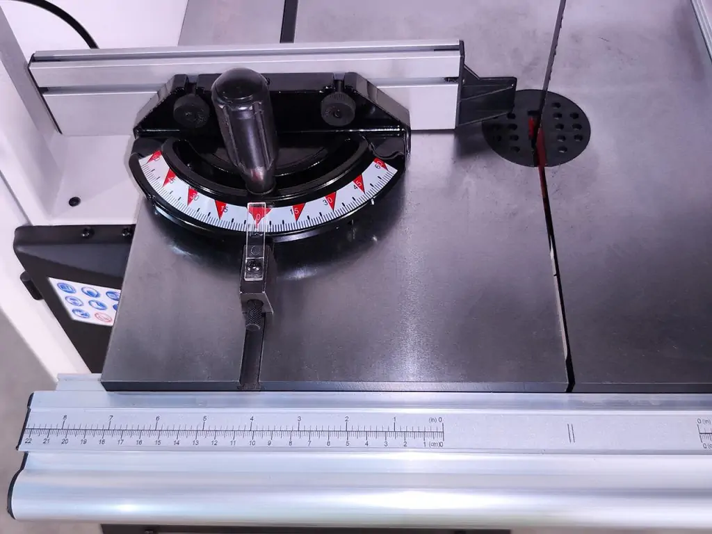 - Поздовжній упор, оснащений лінійкою з віддзеркаленою розміткою