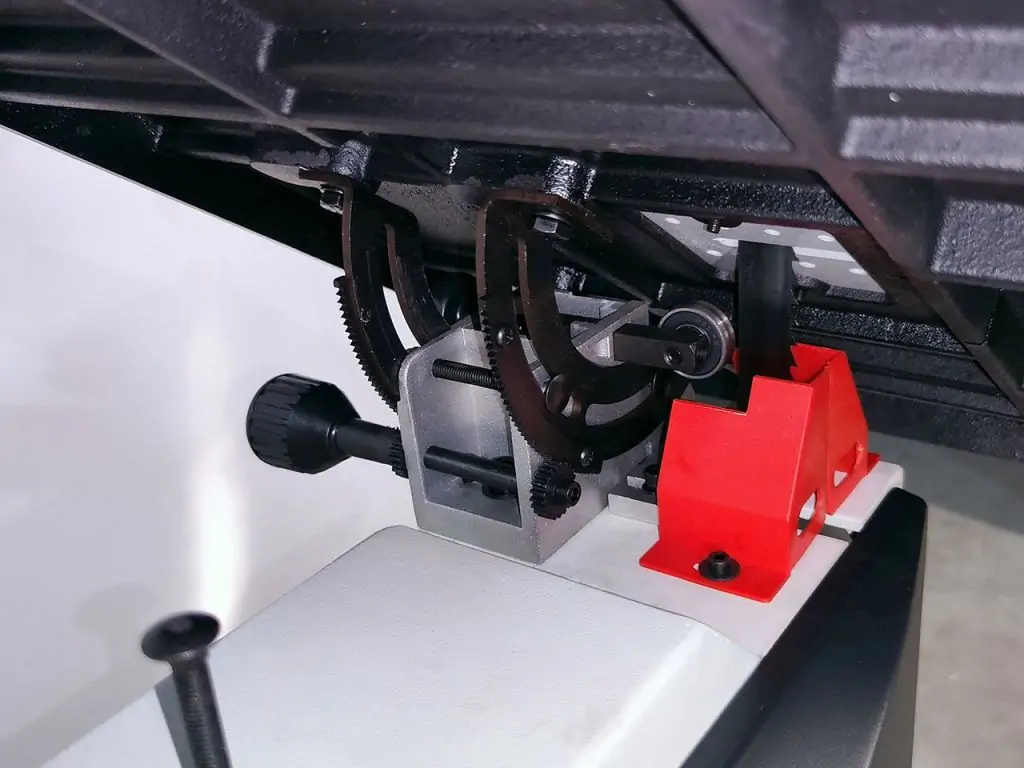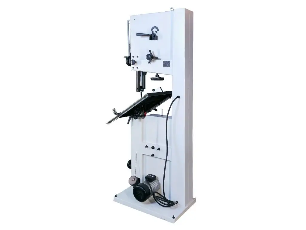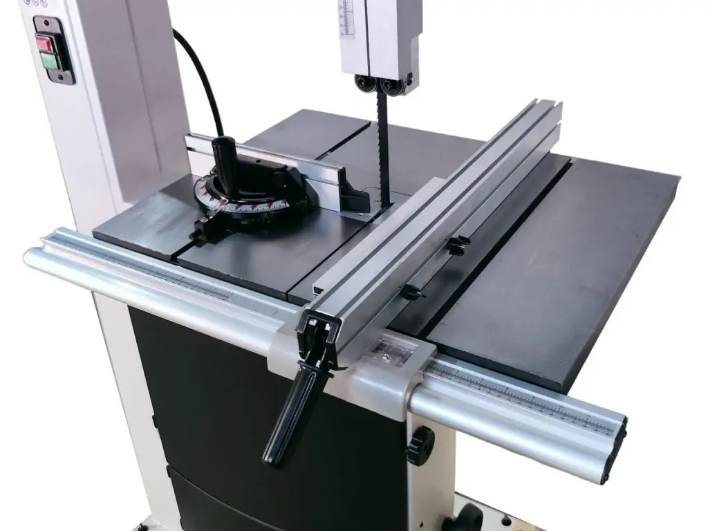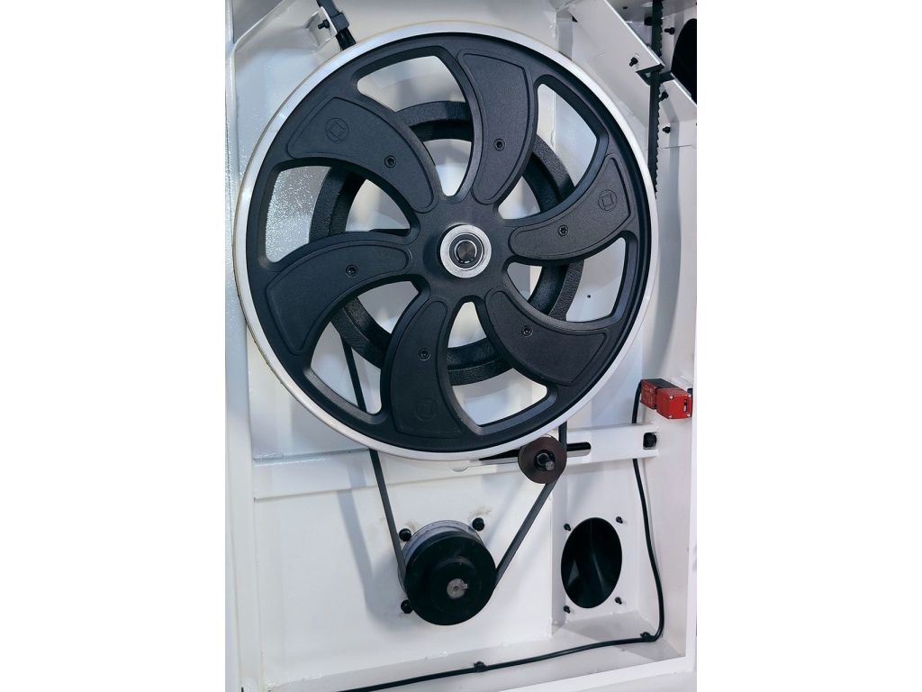 Дві швидкості ріжучого полотна - 7 і 14 м/с. Допустима ширина полотна - від 9,5 до 37 мм. Напрямні пильної стрічки позиціонуються за допомогою маховика і зубчастої рейки. Міцні шківи з гумовим покриттям забезпечують тиху роботу і надійність пили. Чавунний стіл з відшліфованою поверхнею нахиляється під кутом від -5 до +45°.