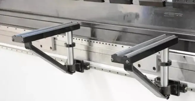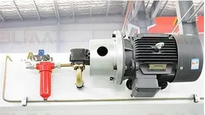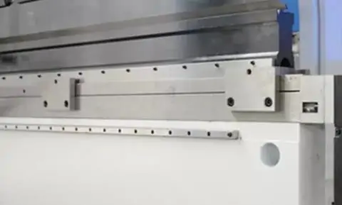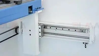 - Рух згинальної балки контролюється пропорційними клапанами з датчиком положення, які в поєднанні з лінійними зчитувачами забезпечують дуже точну роботу згинальної балки (осі Y1-Y2). Завдяки цьому забезпечується робота верстата з точністю позиціонування повзуна 0.01 мм.