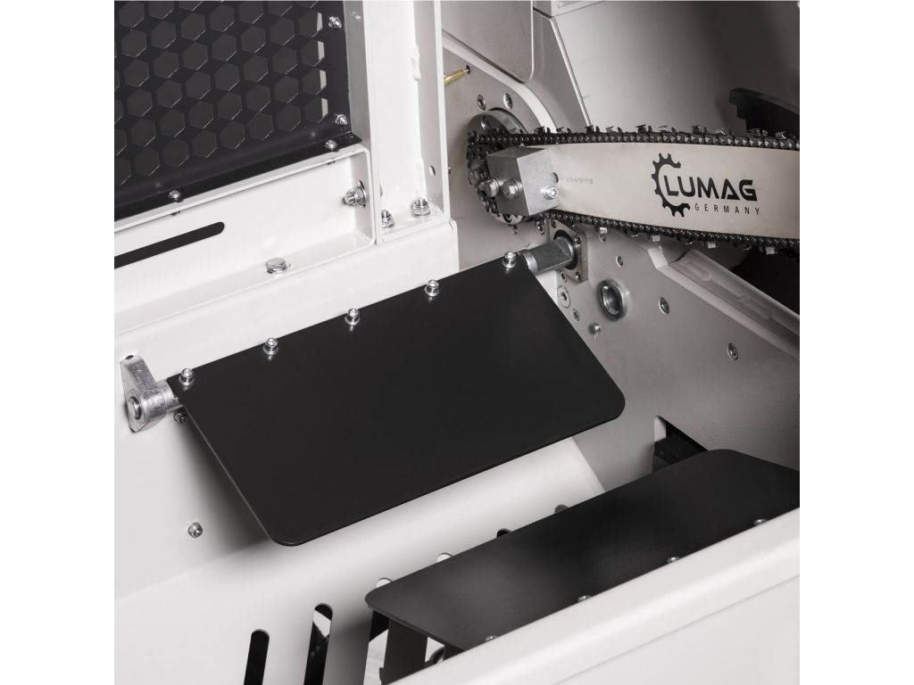 Напівавтоматична машина для різання та розколу дров Lumag SSA 400ZHPROSZ з електроприводом 400 В і ВОМ від Lumag — це потужний і надійний інструмент для ефективної обробки деревини. Завдяки можливості роботи як від електроприводу, так і від ВВП, вона здатна обробляти великі колоди діаметром до 38 см. Машина оснащена високоякісним ланцюгом і новою системою механічного змащення, що забезпечує тривалий термін служби. Гідравлічна ланцюгова пилка, тримач колод і поперечне гідравлічне регулювання забезпечують зручність та швидкість роботи, а новий, ширший гідравлічний конвеєр автоматично подає матеріал до розколювального вузла. Дві механічні заслінки запобігають нахилу матеріалу перед розколом, а автоматичний стрічковий конвеєр для видалення матеріалу робить цю машину ідеальним вибором для продуктивної роботи.