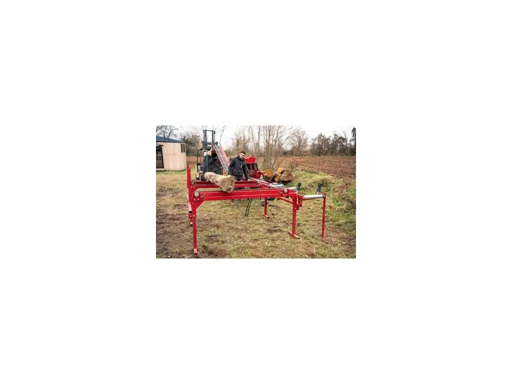 Додаткове обладнання, таке як підйомник колод або ланцюговий конвеєр, ще більше полегшує робочий процес. Ланцюговий конвеєр дозволяє завантажувати кілька колод за допомогою вилкового навантажувача, крана або фронтального навантажувача, усуваючи необхідність піднімати одну колоду за раз.