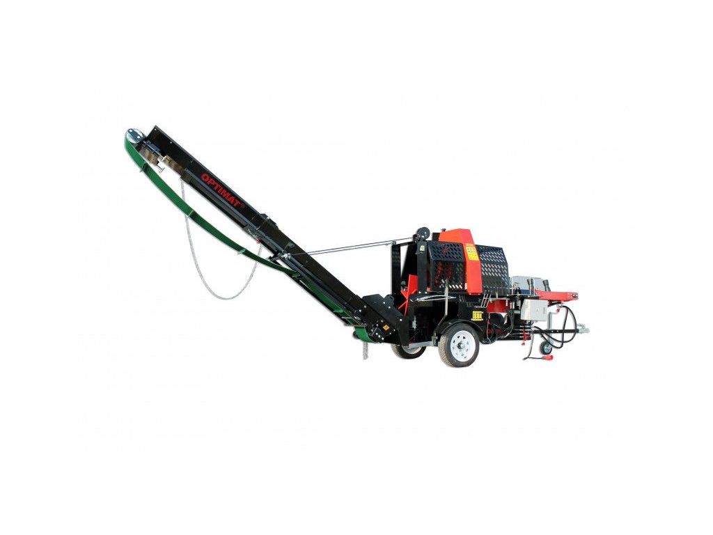 Напівавтоматична машина для різання і розколювання дров OPTIMAT Titanium CLS20-E 480 - це ефективне обладнання, яке виконує одразу 3 функції: розпилювання колоди на потрібну довжину, розколювання на 4-6 частин і транспортування дров за допомогою конвеєра на довжину до 3,2 м та висоту до 2 м. Максимальний діаметр колоди - 480 мм, довжина розпилювання - до 610 мм. Сила розколювання до 20 тонн і гідравлічний привід ріжучого та розколюючого інструментів забезпечують ефективну роботу з усіма породами деревини. Продуктивність роботи становить 5-8 куб/год (в залежності від породи, діаметру та вологості дерева). Час робочого циклу - 6-9 секунд.