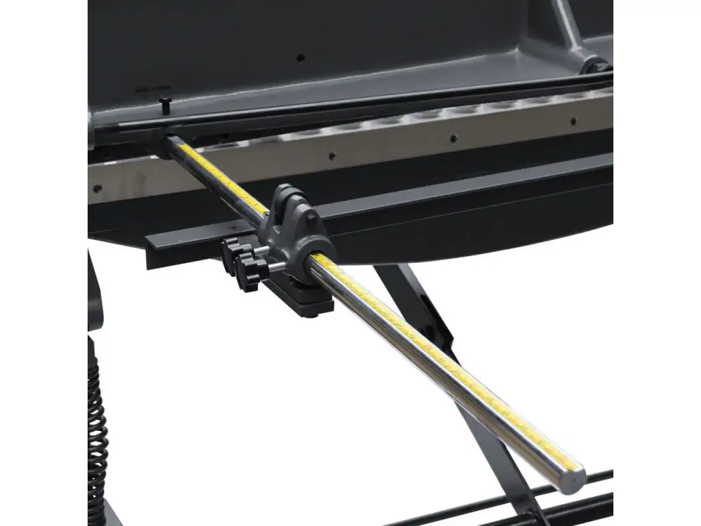 Автоматична притискна балка надійно фіксує лист перед порізкою і укомплектована полімерними накладками для запобігання пошкодженню матеріалу. Рух ріжучої балки здійснюється за допомогою педального механізму, а її підйом автоматичний за рахунок пружин. Упори і лінійки з обох боків робочого столу дозволяють максимально точно позиціонувати заготовку, а обмежувач глибини з міліметровою шкалою і безступінчатим регулюванням упора до 840 мм забезпечує точне встановлення потрібного розміру деталі. Ці ручні гільйотинні ножиці мають просту, жорстку конструкцію з якісних матеріалів, що забезпечує їх надійність і довговічність.