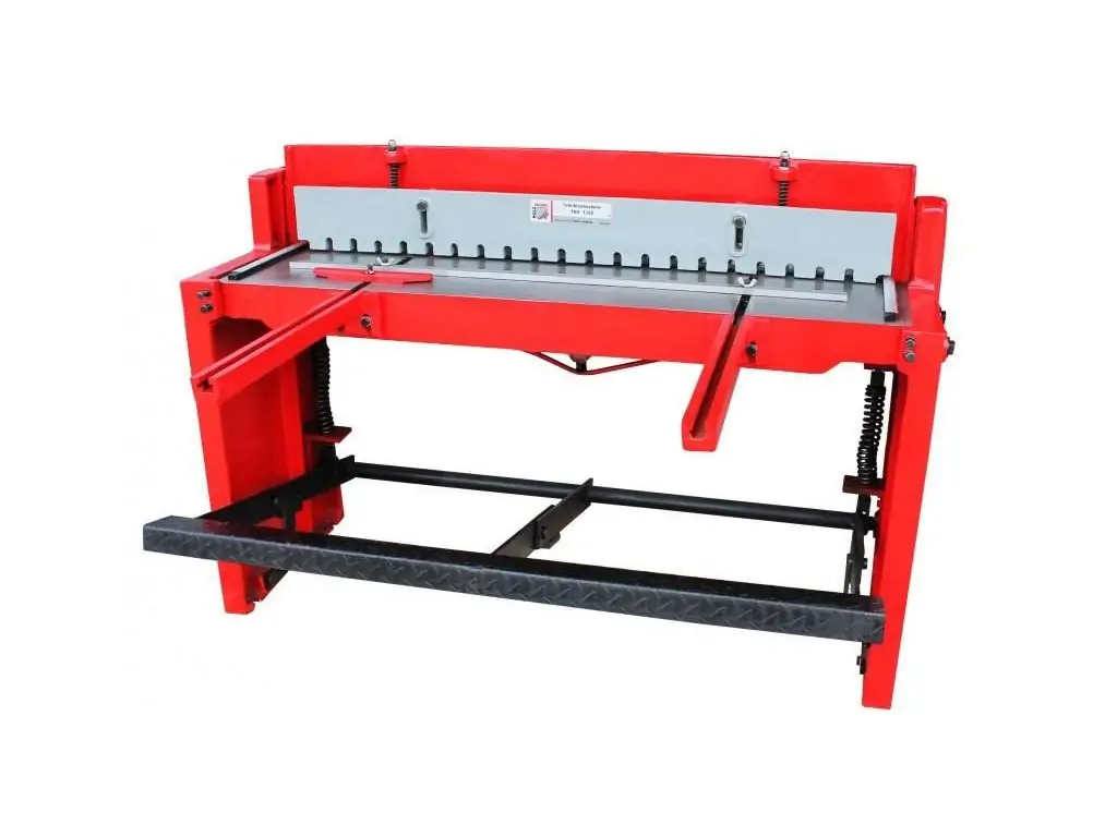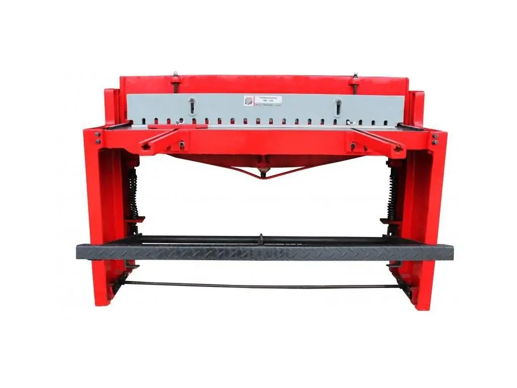 Хід ріжучого ножа під кутом близько 5º. Цим досягається плавність різу та зниження зусиль, необхідних для здійснення розкрою. Автоматичний ефективний притискний пристрій для фіксації листового металу перед порізкою. Рух ріжучої балки відбувається за рахунок педального механізму. Підйом ріжучої балки здійснюється пружинами. Простота конструкції забезпечує довговічність верстата.