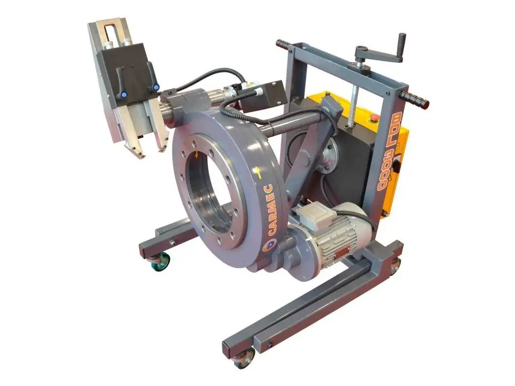 Верстат для проточування гальмівних дисків Carmec BDL 3000SP - це спеціалізоване обладнання для усунення биття, нерівномірного зносу, подряпин та дисбалансу гальмівних дисків на важкому транспорті (вантажівки, автобуси, комерційна техніка) без зняття диска зі ступиці. Верстат монтується безпосередньо на ступицю колеса, що дозволяє проточити диск ідеально перпендикулярно до осі обертання колеса, компенсуючи будь-яке початкове биття самої маточини. Обробка обох робочих поверхонь диска за один прохід значно підвищує швидкість ремонту. Пристрій підходить для різних типів мостів. Діаметр дисків - 120-500 мм, максимальна товщина - 70 мм.