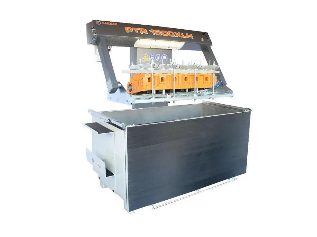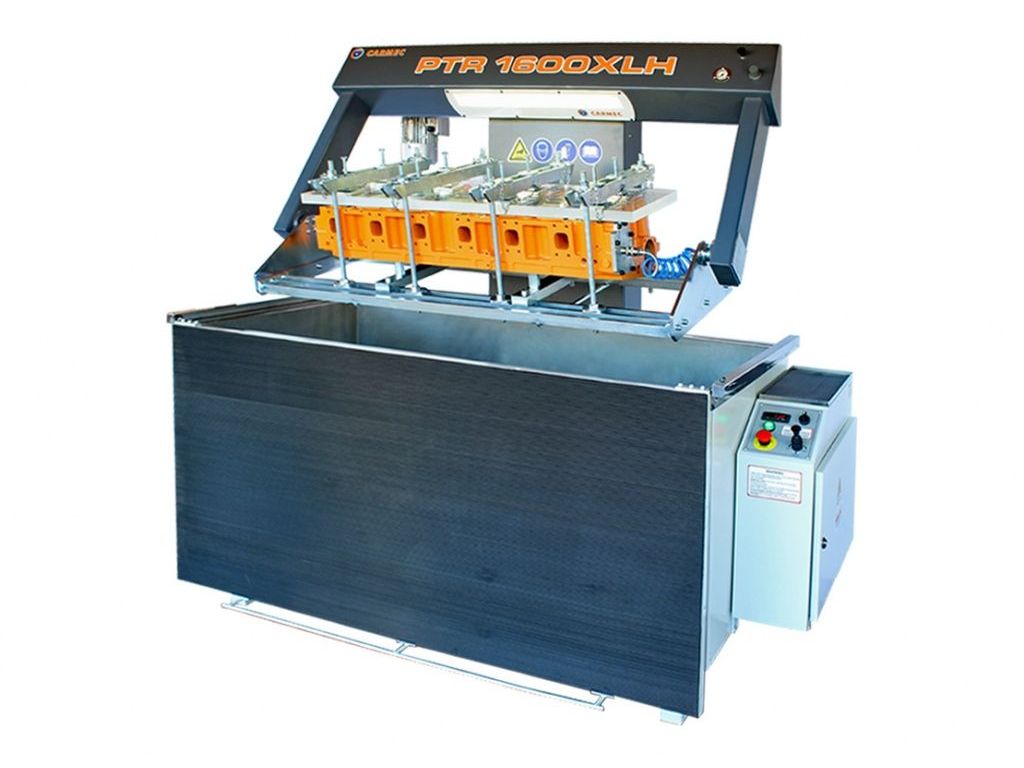 Стенд для перевірки герметичності Carmec PTR 1600XLH - це ефективне обладнання для виявлення мікротріщин та інших джерел негерметичності охолоджувальних систем головок та блоків циліндрів. Оснащений 2 нагрівальними елементами потужністю 4,5 кВт кожен, які швидко нагрівають воду від 0 до 90°C, що імітує робочу температуру двигуна. Гідравлічний механізм підйому/опускання люльки потужністю 0,75 кВт полегшує завантаження важких і габаритних ГБЦ та блоків. Максимальний хід люльки становить 550 мм, швидкість підйому і опускання - 60 мм/сек.