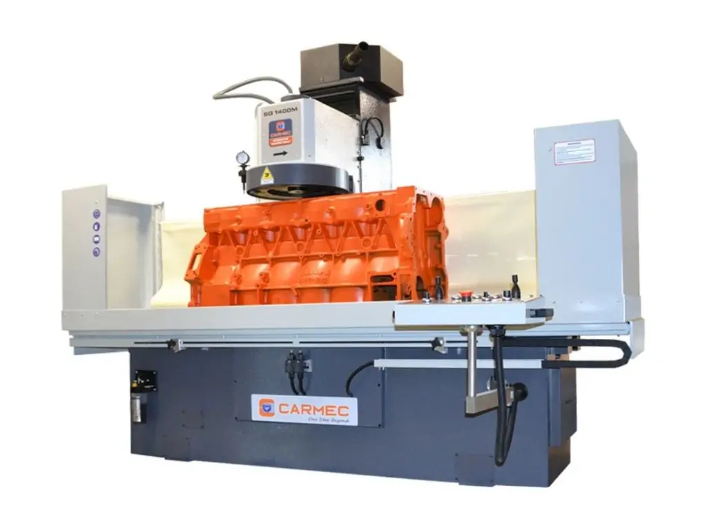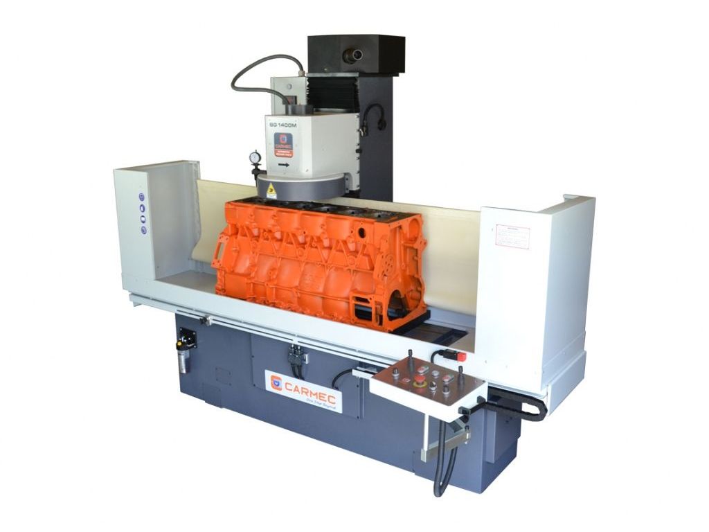 Плоскофрезерний верстат CARMEC SG1400М призначений для відновлення ідеальної площинності плоских поверхонь головок і блоків циліндрів довжиною до 1220 мм і шириною до 405 мм. Висота деталей - 115-800 мм, максимальна вага - 300 кг. Верстат здатний обробляти як чавунні, так і алюмінієві ГБЦ, включаючи дизельні головки зі сталевими камерами попереднього згоряння.