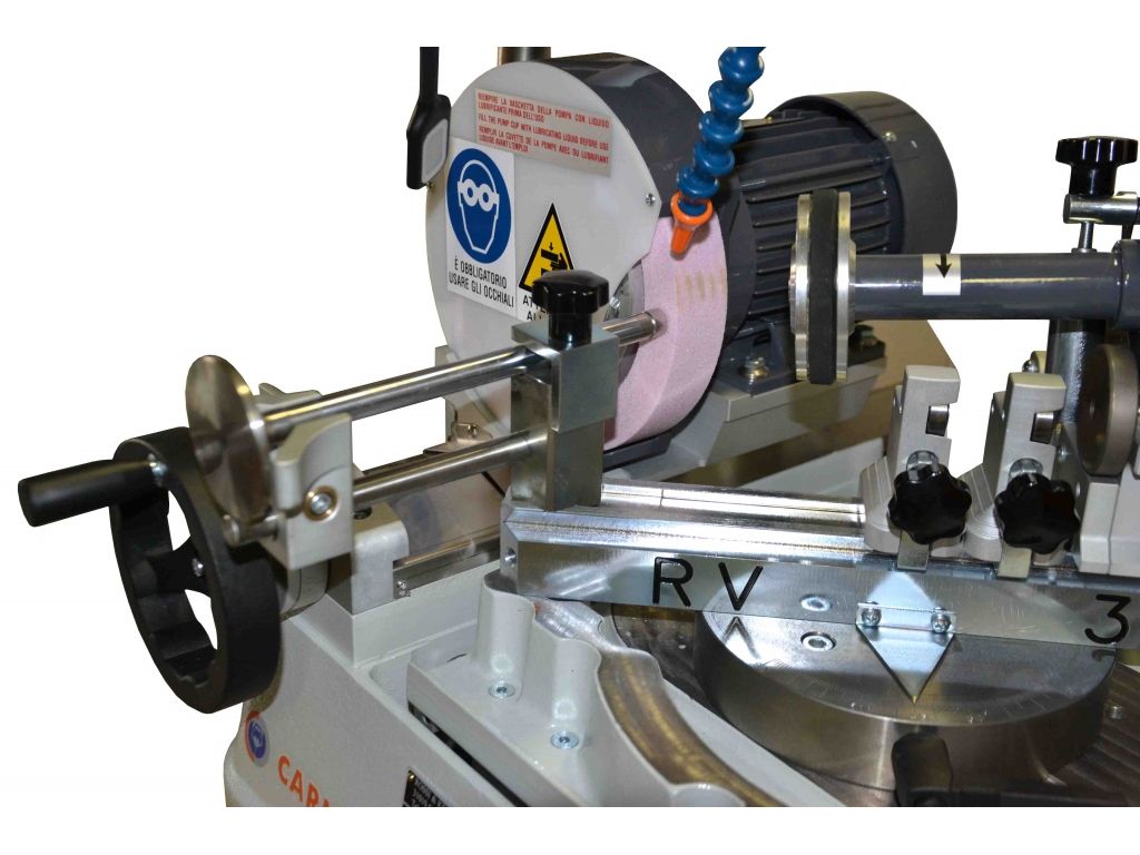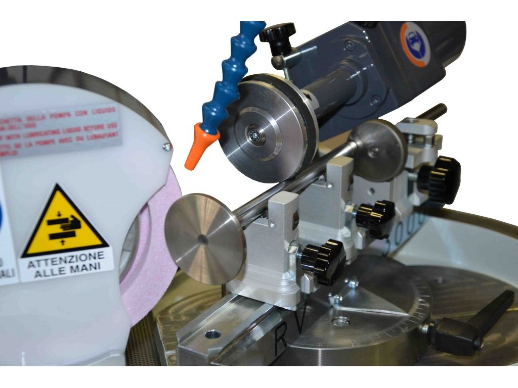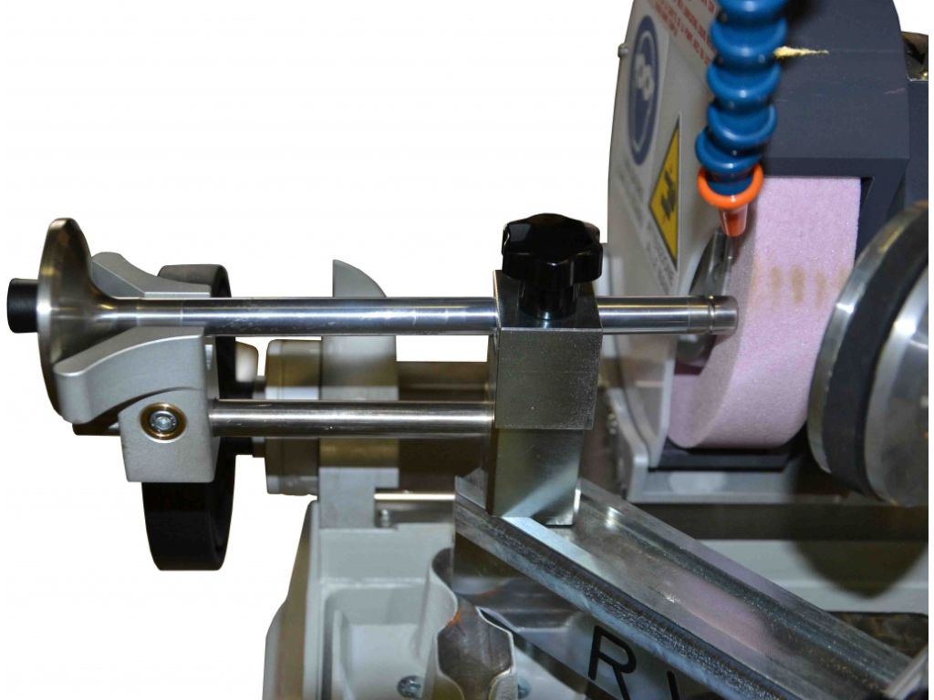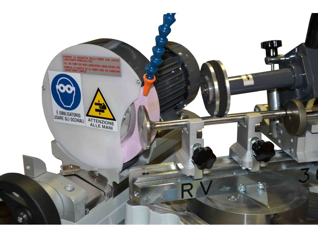 Замість традиційних цангових або кулькових патронів для фіксації штока клапана використовується система подвійних V-подібних опор, що гарантує високу точність позиціонування і пришвидшує налаштування верстата. Низька швидкість обертання штока у поєднанні з високою швидкістю круга забезпечує чисту, гладку поверхню без слідів або рисок. Вбудований насос охолоджувальної рідини запобігає перегріву металу і зміні його структури. Також цей верстат для шліфування клапанів оснащений універсальним пристосуванням для шліфування торця клапана, що дає змогу ідеально вирівняти висоту клапанів.