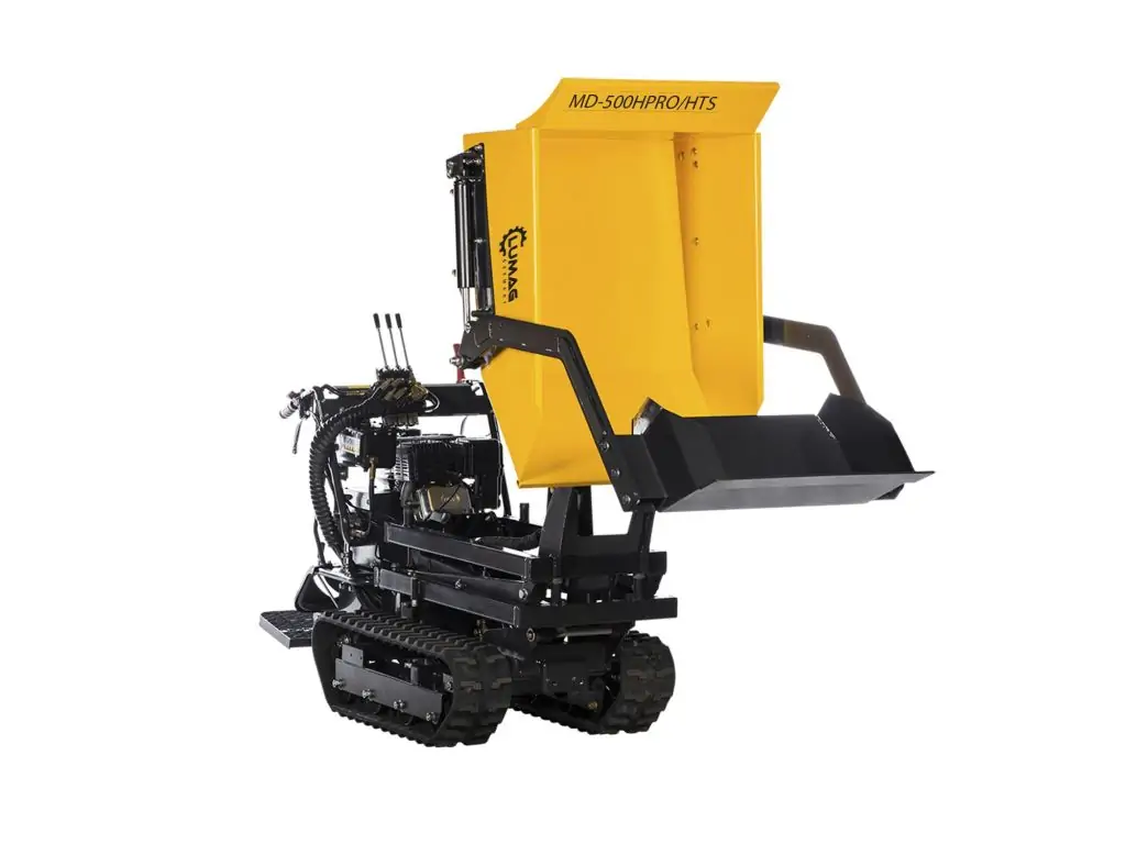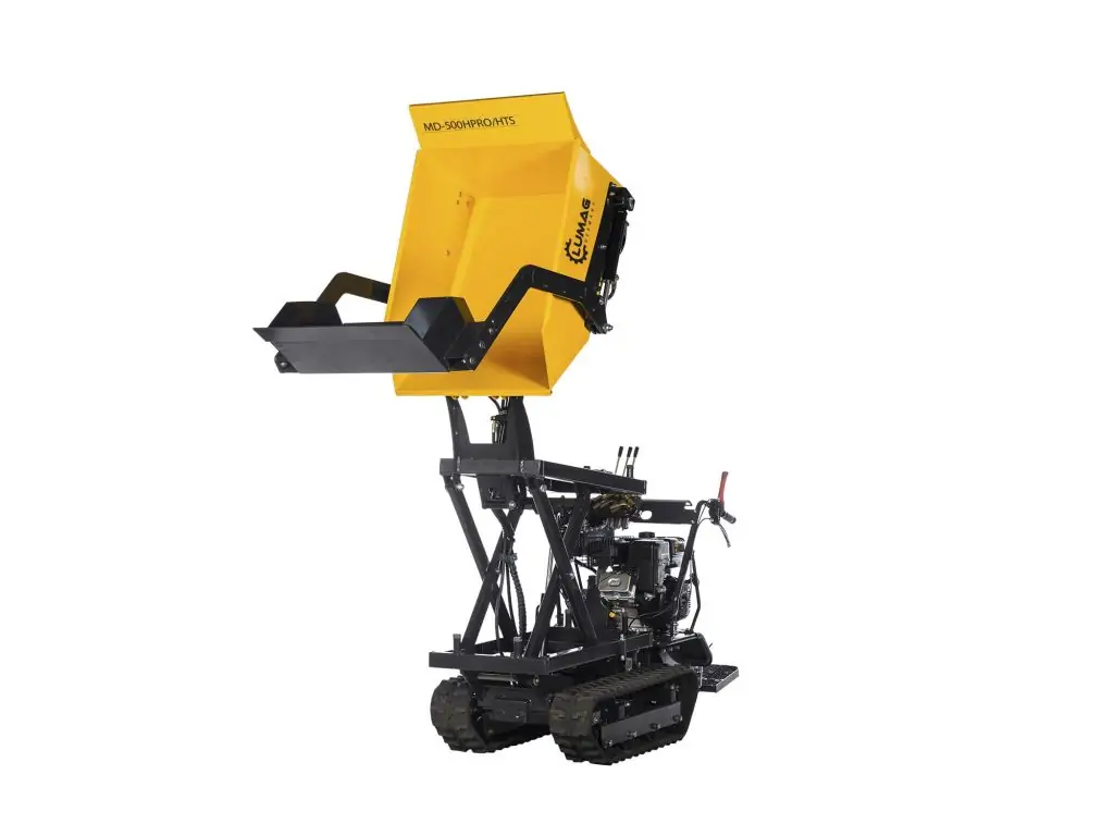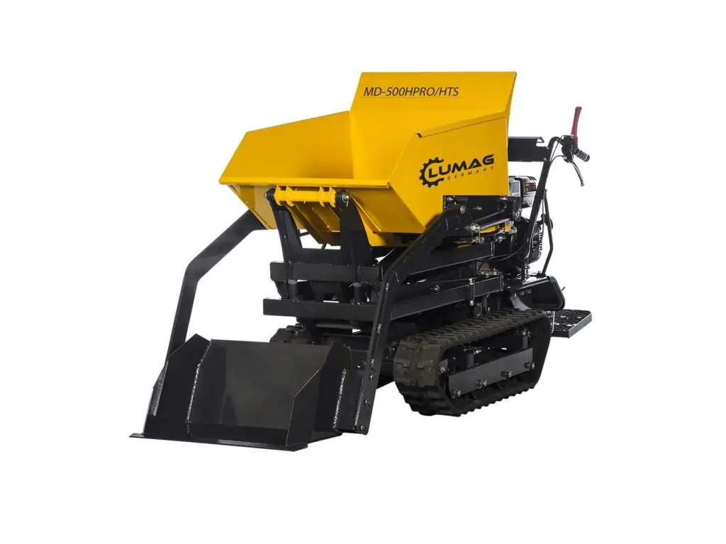 Міні самоскид Lumag MD500H-PRO-HTS відмінно працює у найскладніших умовах завдяки своїй міцній конструкції та високоякісним матеріалам. Конструкція дозволяє забезпечити високу ефективність і економічність. Гусеничний міні самоскид MD500H-PRO-HTS з гідравлічним перекидним ковшем, завдяки своїм габаритам, може вільно використовуватися у вузьких проходах та доріжках, а також може легко завантажувати та розвантажувати матеріали на різній робочій висоті. Вантажопідйомність 500 кг.