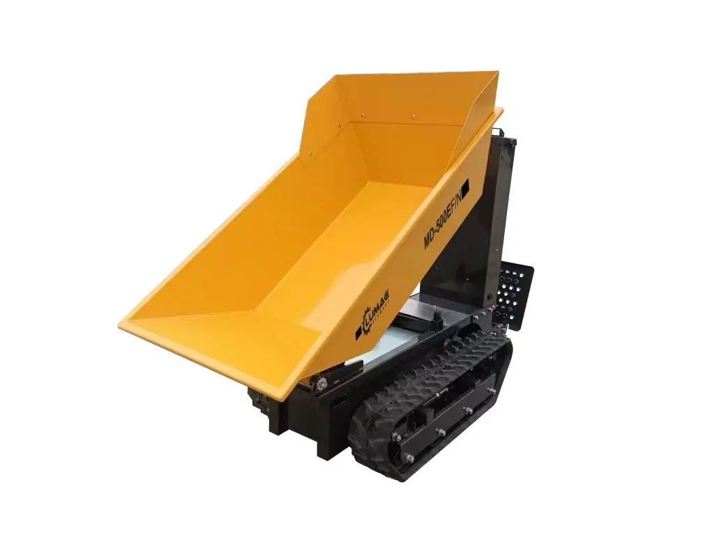 Електричний міні-самоскид Lumag MD500EF-N з вантажопідйомністю 400 кг, гусеничним шасі та компактною, надійною конструкцією чудово справляється з транспортуванням вантажів на різних місцевостях, а відсутність шкідливих викидів і практично безшумна робота дозволяють безпечно використовувати його у закритих приміщеннях. 2 електроприводи потужністю 750 Вт кожен забезпечують стабільну, продуктивну роботу. Акумулятор 48 В при повному заряді дає змогу безперервно працювати до 4 годин (залежно від навантаження).