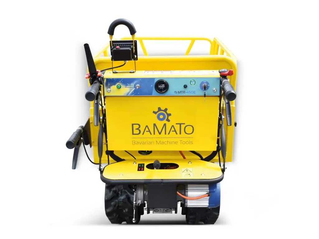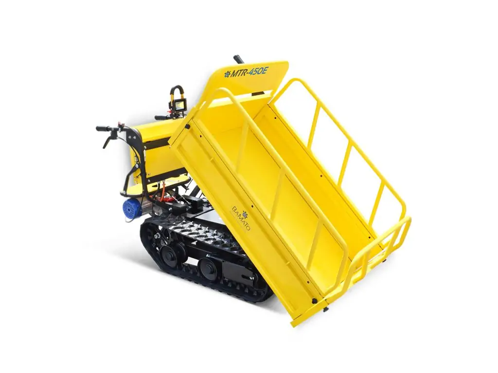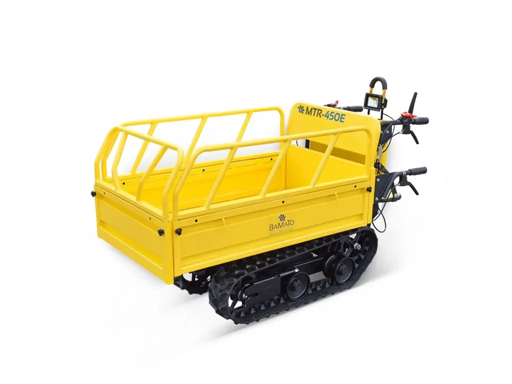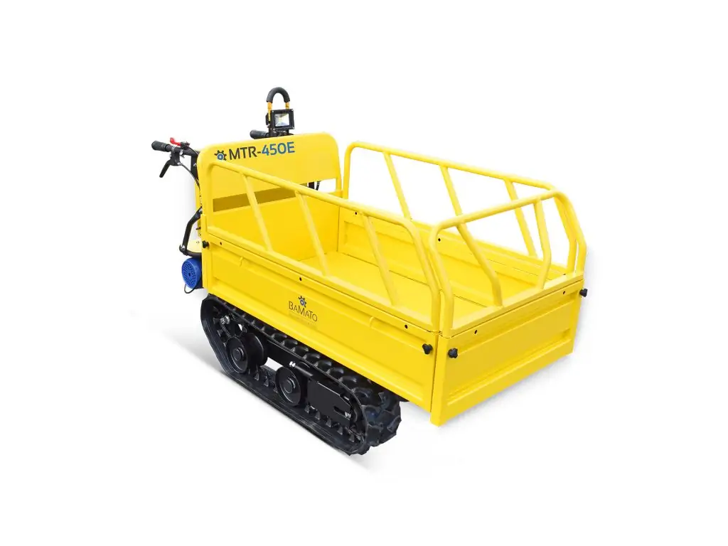 Міні-самоскид BAMATO MTR-450E на гусеничному ходу є ідеальним помічником для транспортування вантажів вагою до 450 кг. Завдяки потужному електричному приводу потужністю 800 Вт він не тільки є екологічно чистою альтернативою бензиновим або дизельним двигунам, але й вражає своєю практично безшумною роботою. Це означає, що гусеничний думпкар можна без проблем використовувати і в приміщенні.