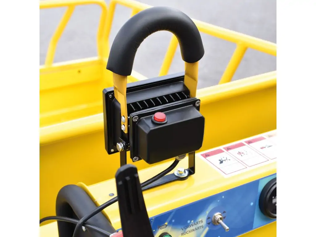 Електричний самоскид вражає не тільки своєю екологічністю, але і високим рівнем комфорту водіння. Завдяки компактній конструкції він легко маневрує і без зусиль поміщається навіть в обмеженому просторі. Світлодіодне освітлення також забезпечує оптимальну видимість навіть в умовах поганого освітлення. Управління міні-гусеничним самоскидом MTR-450E інтуїтивно зрозуміле і зручне. Крім того, самоскид оснащений практичним і простим в експлуатації механізмом перекидання, який перетворює розвантаження вантажів на дитячу забаву.