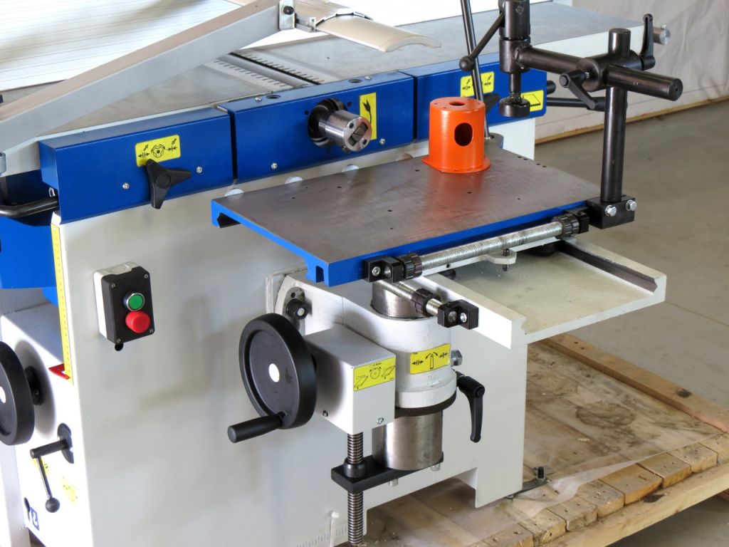 Фрезерний і ріжучий модулі оснащені незалежними двигунами потужністю 2,2 кВт. Фуганок і рейсмус працюють від одного двигуна потужністю 3 кВт, але подача рейсмуса виконується за допомогою окремого мотора потужністю 0,8 кВт. Живлення від трифазної мережі. Для точного виставлення упорів є телескопічна штанга з мікрорегулюванням. Незважаючи на компактний розмір, цей багатофункціональний верстат для столярних робіт має жорстку станину і вагу 650 кг, що забезпечує його точність і стабільність при різних навантаженнях.