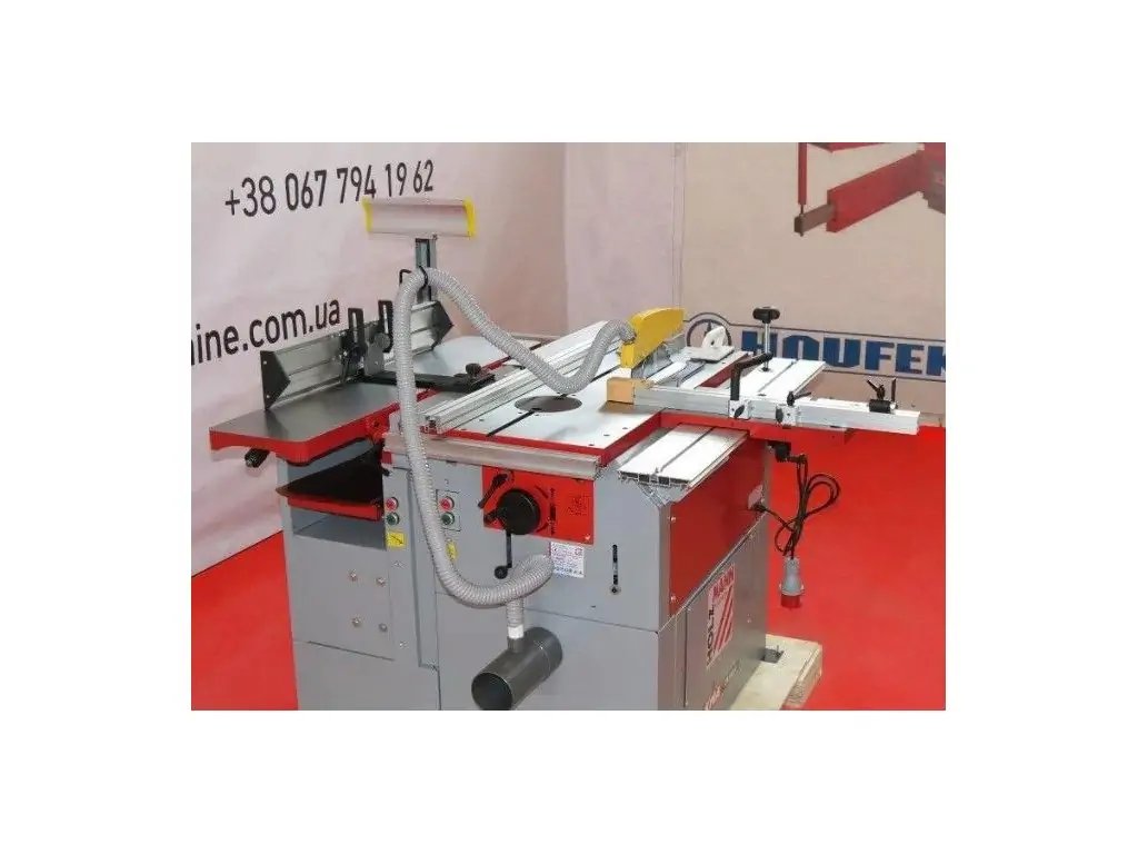 Комплект постачання: захисний кожух фрези, кутовий упор, притискний пристрій, скошений упор з відкидним упором, паралельний упор, фугувальний упор (поворот в діапазоні 90°-45°), калібр для установки стругальний ножів, інструмент для технічного обслуговування.