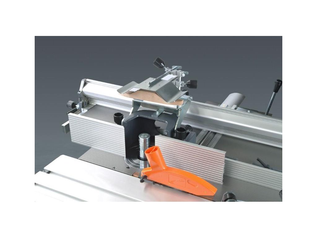 Три двигуна дозволяють пильному, фрезерного і фуговально-рейсмусовому вузлів працювати незалежно, але поперемінно. Перемикач розташований на панелі управління. Базова комплектація включає в себе додаткове обладнання, яке дозволяє найбільш повноцінно експлуатувати верстат.