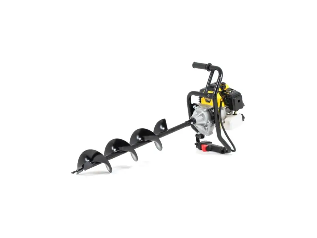 Бензобур Lider Plus TMW52 - це багатофункціональний інструмент для широкого спектру робіт на приватних присадибних ділянках, будівництві, лісовому господарстві тощо. Може використовуватися для створення отворів у грунті під посадку дерев, буріння під комунікації та стовпи паркану тощо. Приводиться в рух 2-тактним бензиновим двигуном потужністю 2,58 к.с., забезпечуючи ширину буріння до 30 см.