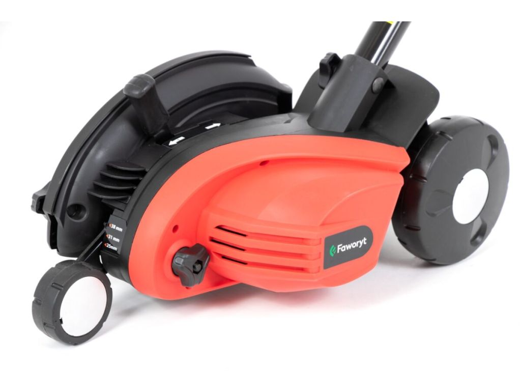 Тример для кромки газону Faworyt HEK1200 з додатковою щіткою для затірки і очищення швів 2W1 підстригає і вирівнює краї газону, а також підрізає і очищає шви і затірку після заміни леза, за допомогою нейлонової круглої щітки.