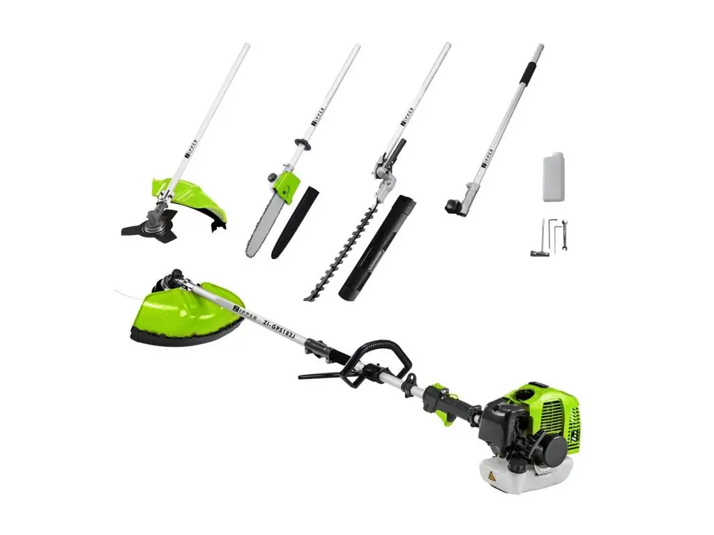 Садовий набір Zipper ZI-GPS182J - це універсальна комбісистема для догляду за садом і присадибною ділянкою, яка складається з універсальної ручки, таких насадок, як тример, садові ножиці, пила та кущоріз, і ременя через плече. Насадки легко і швидко кріпляться на основі і так само легко знімаються. Обладнання працює на базі двотактного бензинового двигуна потужністю 1650 Вт з обертовою швидкістю 9000 об/хв. Об’єм паливного бака 1,1 л дозволяє тривало працювати без дозаправки.