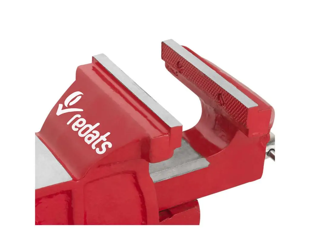 Лещата настільні 150 мм REDATS - це інструмент професійного класу для фіксації заготовок, який підходить для слюсарних, столярних, зварювальних робіт, ремонту, склеювання та складання деталей тощо. Також можуть використовуватися як ковадло. Монтажні отвори дозволяють надійно закріпити лещата на поверхні верстака чи робочого столу, а чавунна конструкція гарантує стійкість до деформації, стабільність і тривалий термін служби.