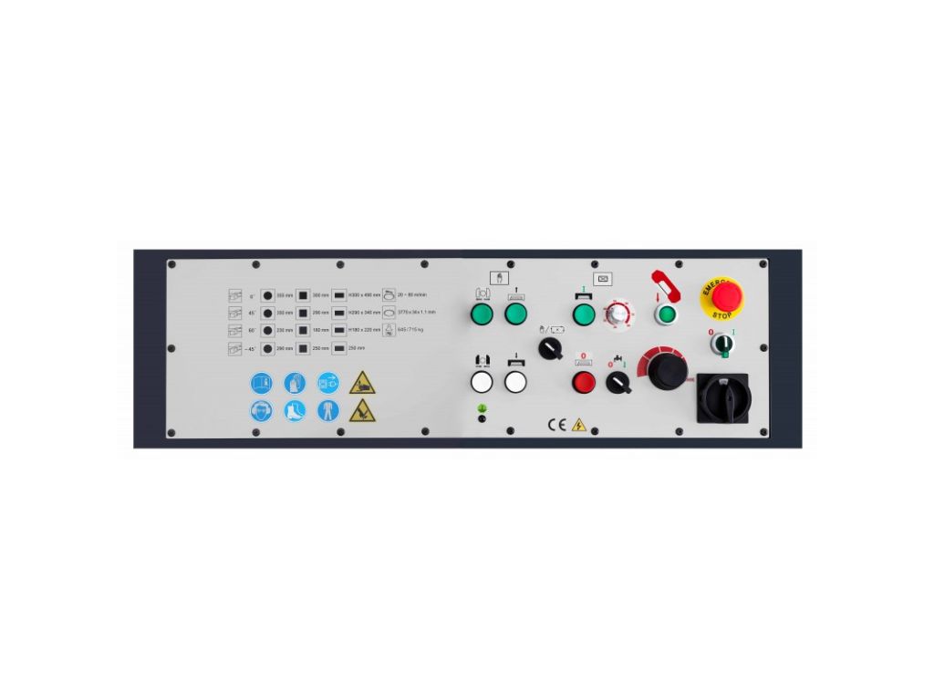 - Додаткова панель для регулювання швидкості опускання ножівки з запобіжним вимикачем.