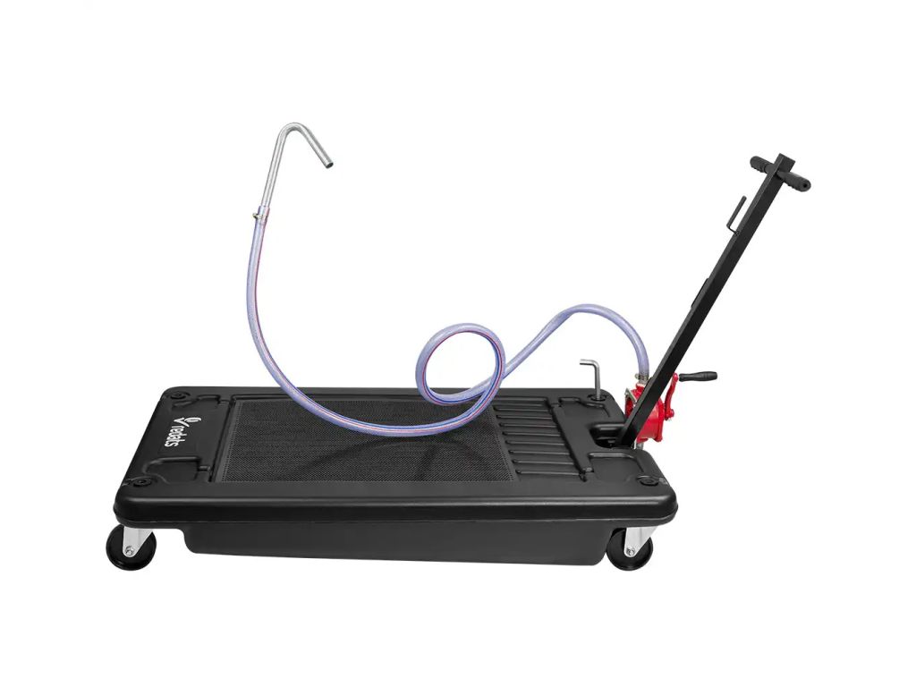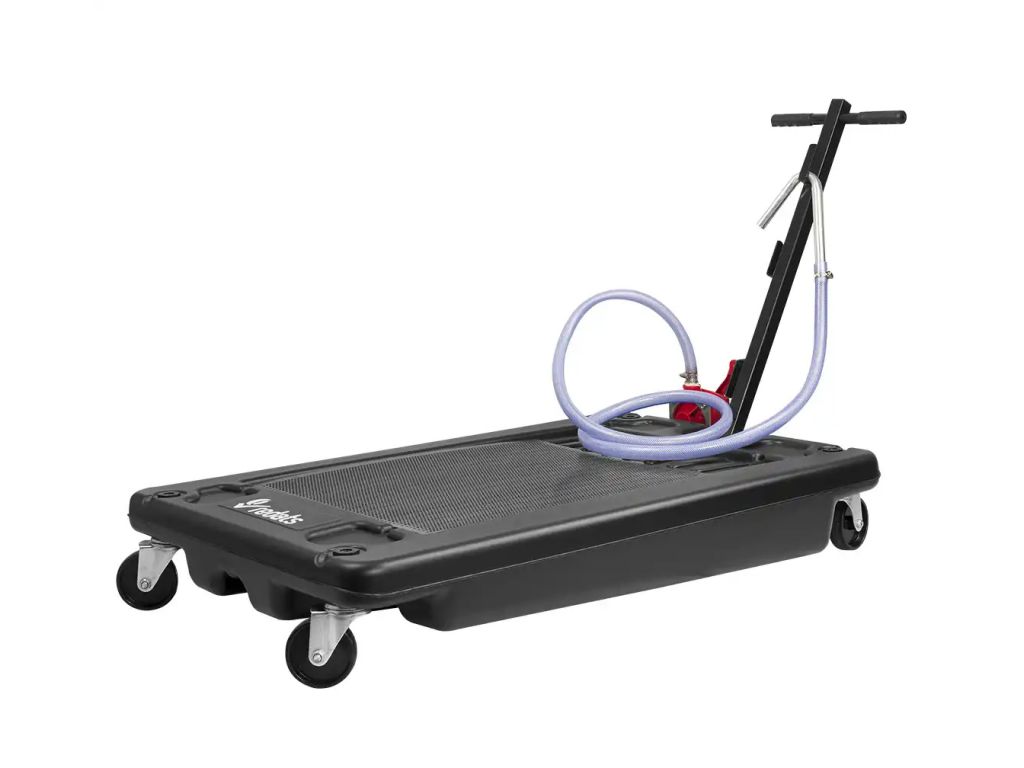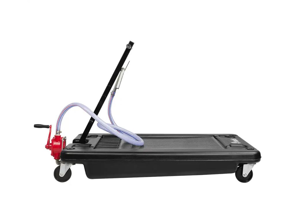 Конструкція маслозливача компактна і легка, що разом з поворотними колесами і довгою ручкою дозволяє швидко і точно розмістити його під зливним отвором картера. Такий маслозливач для авто не потребує зовнішнього джерела живлення, тому його можна використовувати у будь-якому місці.