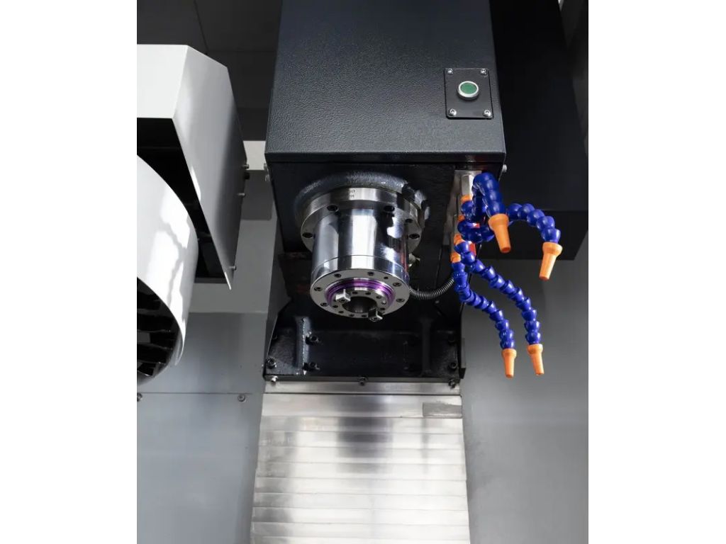 16-інструментальний револьвер зі швидкою автоматичною зміною інструменту, високоточні лінійні напрямні для всіх осей, автоматична система змащення, система охолодження ЗОР і жорстка, масивна станина гарантують надзвичайно високу якість і продуктивність обробки. Швидкість шпинделя має широкий діапазон регулювання від 100 до 8000 об/хв, що дозволяє ефективно працювати з усіма видами металів. Загартована поверхня столу унеможливлює пошкодження заготовок. Для безпеки оператора робоча камера герметична. Цей обробний центр по металу з ЧПК відповідає європейським стандартам якості та безпеки, що підтверджується сертифікатом СЄ.