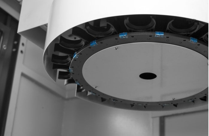 Верстат оснащений системою автоматичної зміни інструменту типу парасолька. Місткість магазину складає 16 інструментів)