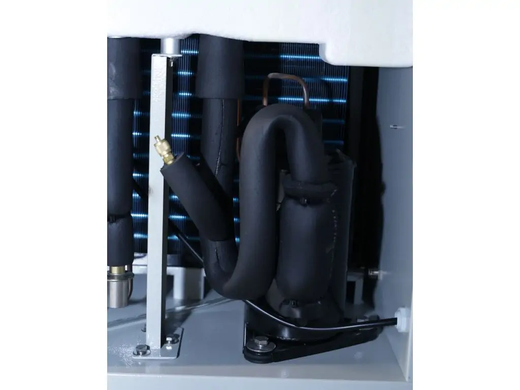 В основі роботи осушувача рефрижераторного типу - охолодження стисненого повітря до температури, нижчої за точку конденсації вологи. Після цього конденсат видаляється через дренажну систему, а стиснене повітря нагрівається до кімнатної температури і подається на вихід.