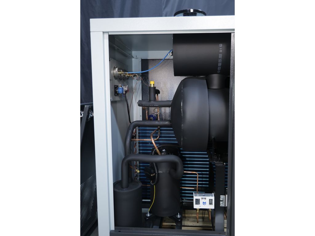 Рефрижераторний осушувач охолоджує стиснене повітря до певної температури, при якій волога конденсується та відводиться через дренажну систему. Потім охолоджене повітря знову нагрівається до кімнатної температури і подається на вихід.