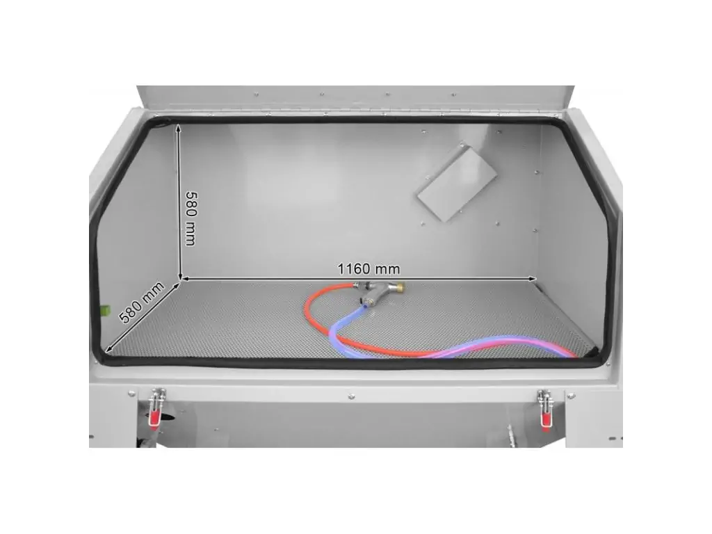 Це надійний та професійний інструмент, який забезпечить точне та ефективне очищення та обробку металевих поверхонь. Піскоструминний апарат – це пристрій спеціально розроблений для видалення поверхневих шарів з різних матеріалів. Завдяки бічним отворам він дозволяє обробляти довгі заготовки, що забезпечує ще більшу універсальність та гнучкість у використанні. У двері кабіни встановлені телескопічні приводи, що полегшує їх відкриття та закривання, а значить, підвищує комфорт використання. Стандартно кабіна оснащена системою пиловідведення, яка захищає від вдихання шкідливого пилу під час роботи. Завдяки цьому інструменту робота безпечніша і комфортніша.
