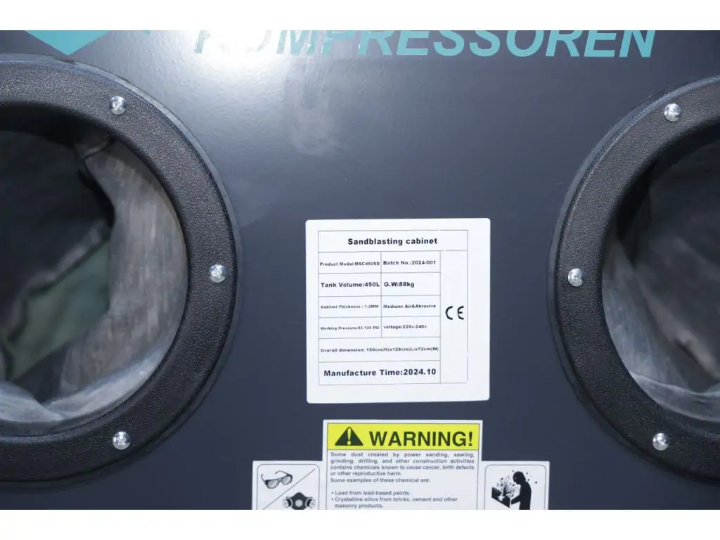 Комплектація піскоструминної камери MAST MSC450SD+DC15