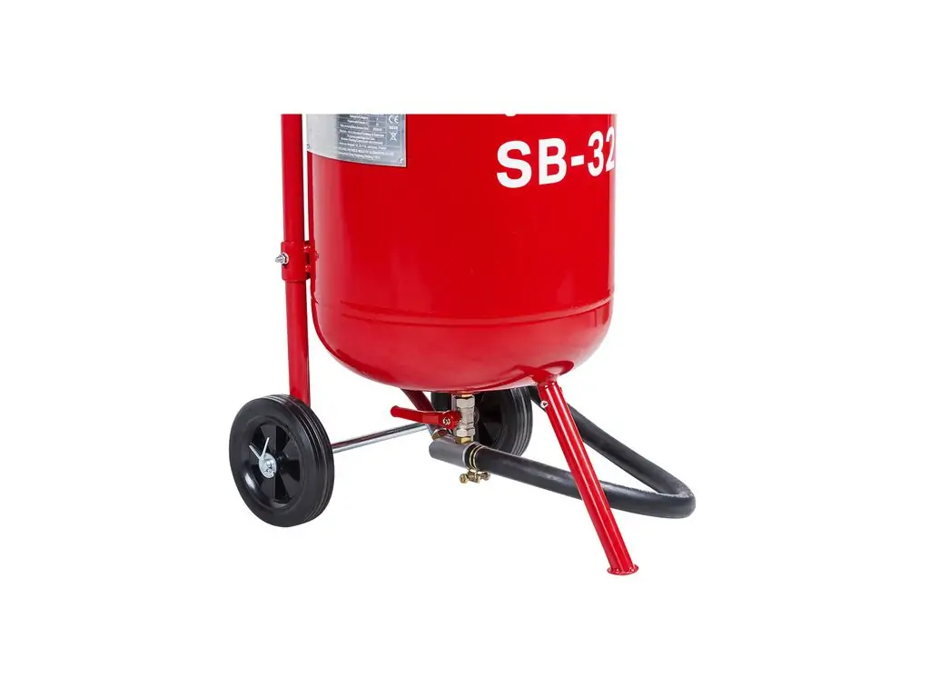 Піскоструминний апарат 32 л REDATS SB-32 - це професійне пневматичне обладнання напірного типу, призначене для очищення поверхонь від різноманітних забруднень (бруд, нагар, іржа, залишки фарби і лаку) та їх підготовки до подальшої обробки (фарбування, зварювання, покриття). Об’єм бака 32 л дозволяє тривало працювати без зупинок на дозаправку та ефективно використовувати абразиви з крупними фракціями. Вертикальна циліндрична форма бака забезпечує самоплив абразиву до вихідного клапана і його рівномірну подачу до повного спорожнення.