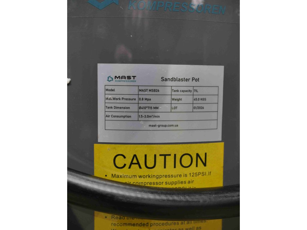 Піскоструминний пристрій напірний MAST MSB26 (80 л) 4