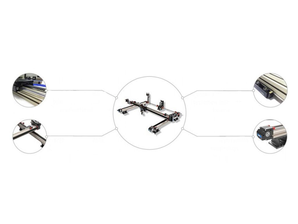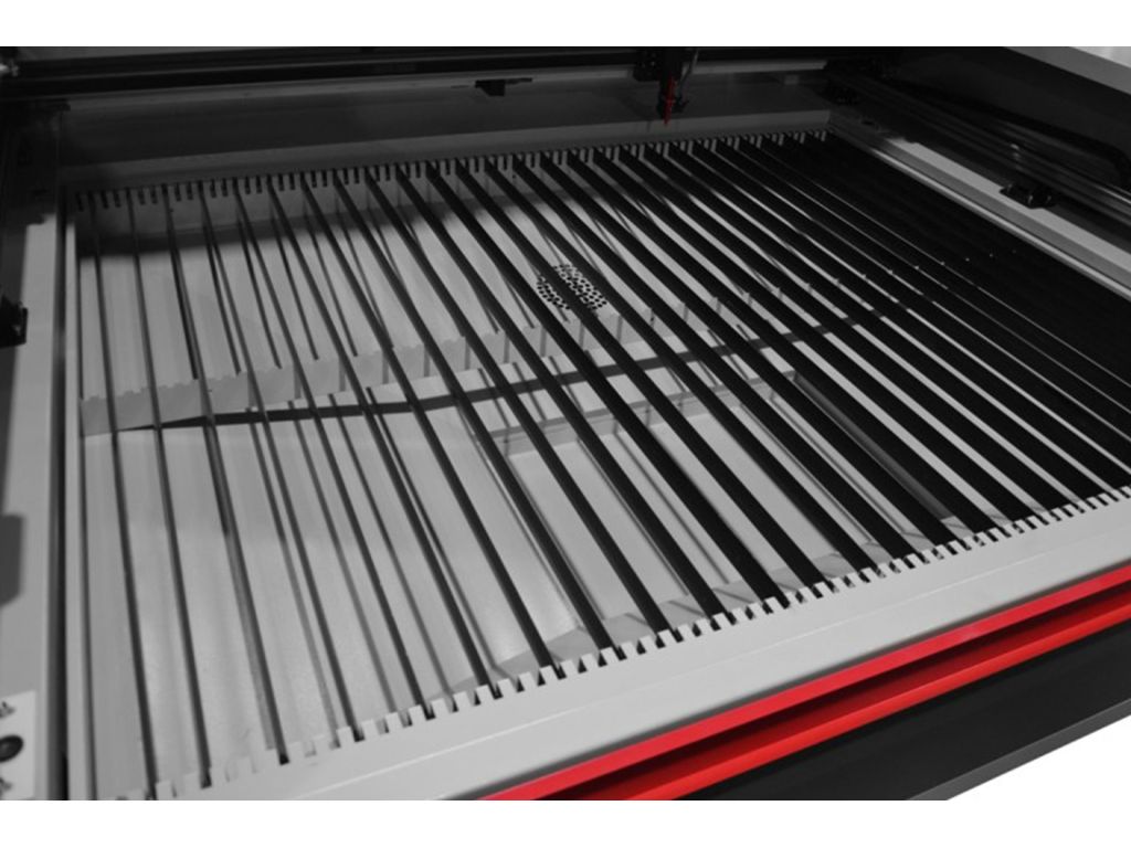 У вартість лазерного плоттера входять, серед іншого: червона точка, платформа, що електрично опускається до 300 мм, стільникова накладка і ножовий стіл, витяжка: дно з ящиком для відходів, вбудований компресор, вентилятор, охолодження, яке можна запустити під час роботи.