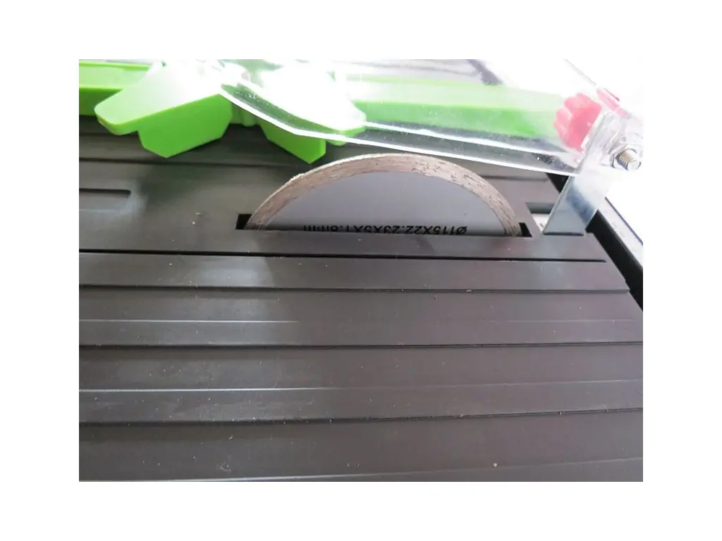 Перевагою представленого верстата є система водяного охолодження, яка запобігає перегріву диска і покращує якість різання. Розмір столу 360х300 мм дозволяє виконувати більшість основних робіт. Верстат підтримує виключно поздовжній забір плитки. Простий у експлуатації та легкий в обслуговуванні. Такий компактний плиткоріз електричний купити можна на KMA.UA за вигідною ціною.