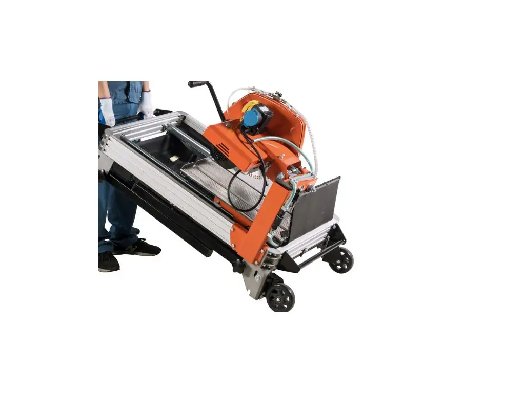 Каменеріз Gölz MS400AL - топове рішення у високоякісному алюмінієвому дизайні! Дуже широкий ріжучий стіл, легке транспортування, можливість косого зрізу під кутом 45°, збільшена глибина та довжина різу.