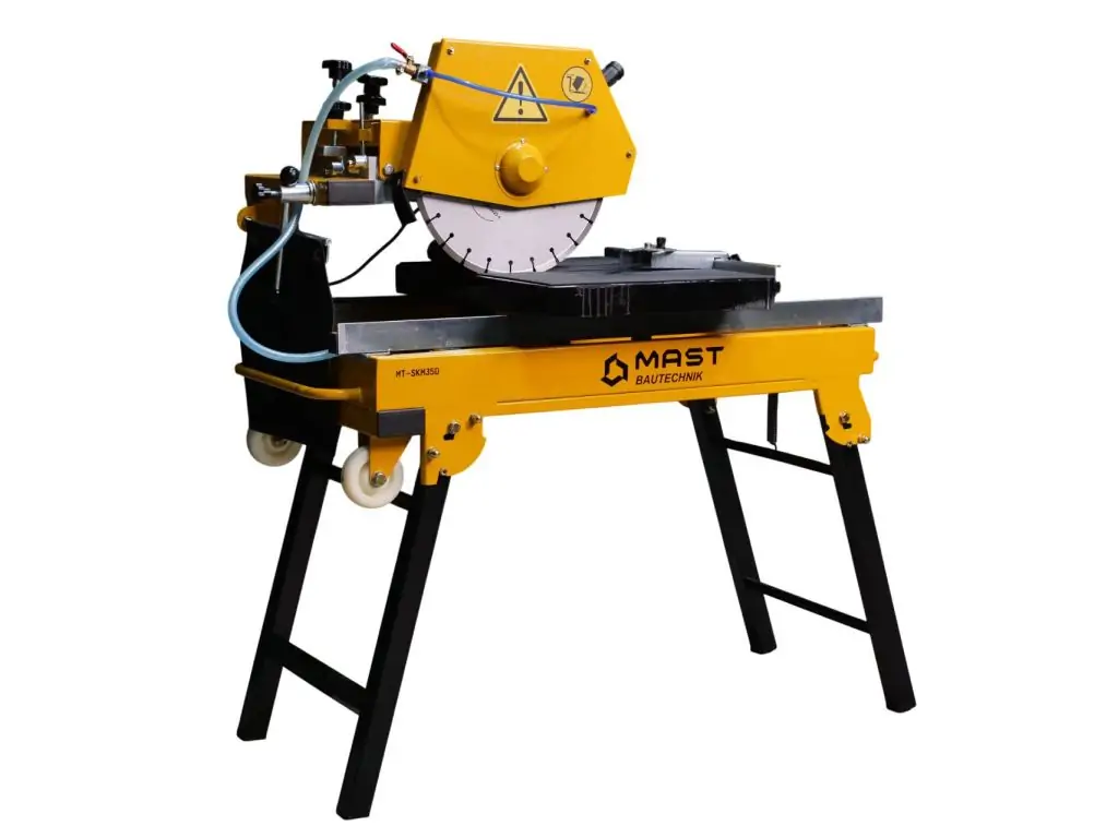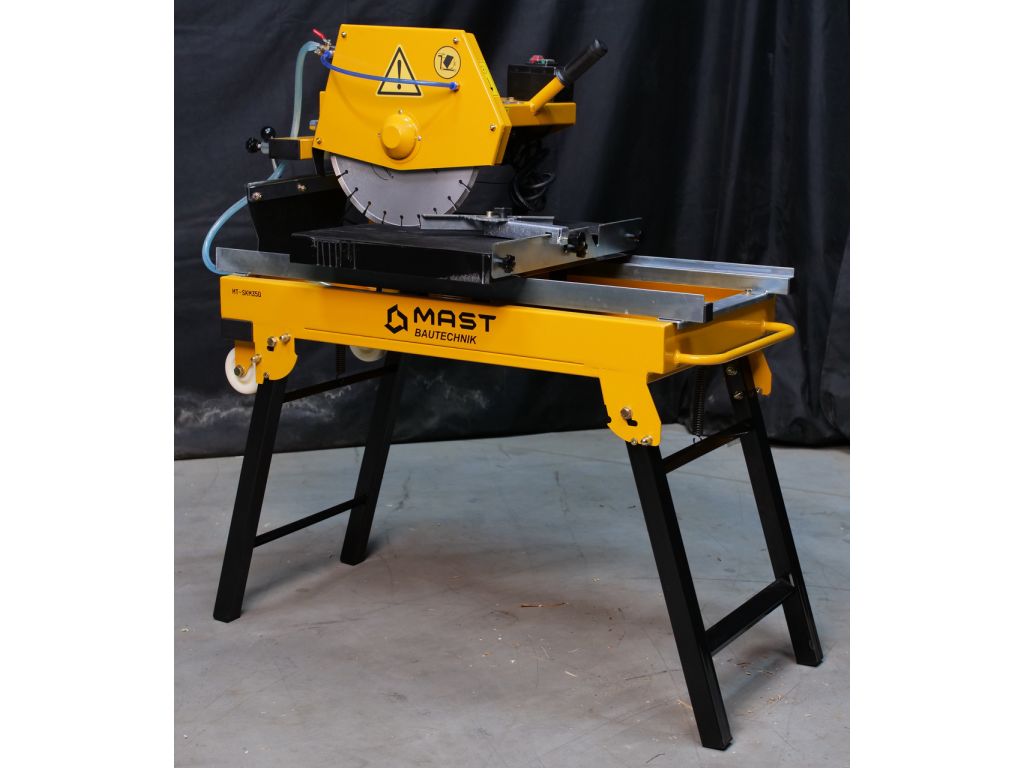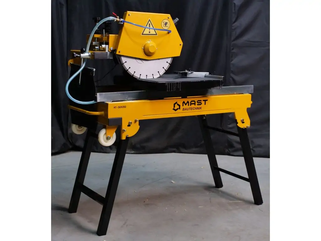 Каменерізний верстат MAST Bautechnik MT-SKM350 - це професійне обладнання для різання натурального і штучного каменю, цегли, бетону та різних видів плитки, оснащене електродвигуном потужністю 2,5 кВт. Перевагою моделі є можливість як сухого, так і мокрого різання, що дозволяє як швидко розпилювати матеріал у виїзних умовах, так і виконувати високоточне різання у майстернях. Живлення верстата від стандартної мережі 230 В дає змогу легко підключити його у будь-якому місці.