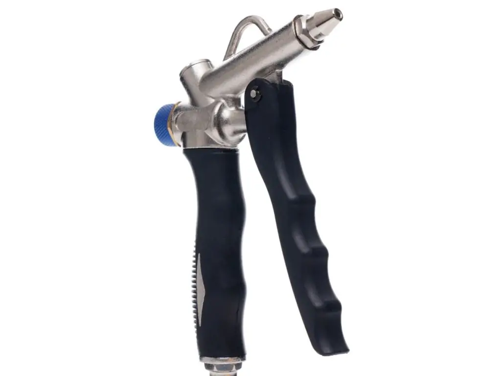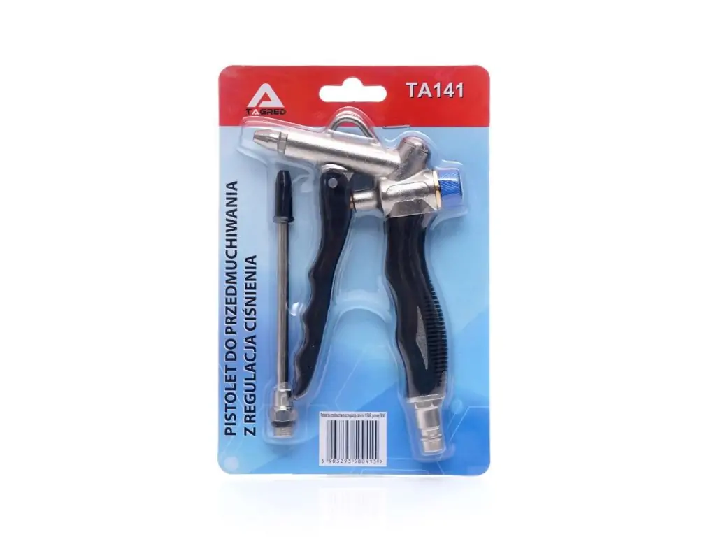 Пневмопістолет з регулюванням тиску TAGRED TA141 - покритий спеціальною гумою, ідеально підходить для видалення бруду з важкодоступних місць. Пристрій має регулювання потоку повітря і оснащений насадкою 110 мм із силіконовим захисним ковпачком, який запобігає подряпинам обдуваних елементів. Корпус виготовлений з алюмінієвого сплаву, а антиковзаюча ручка та роз'єм 1/4", що йде в комплекті, додають зручності у використанні.