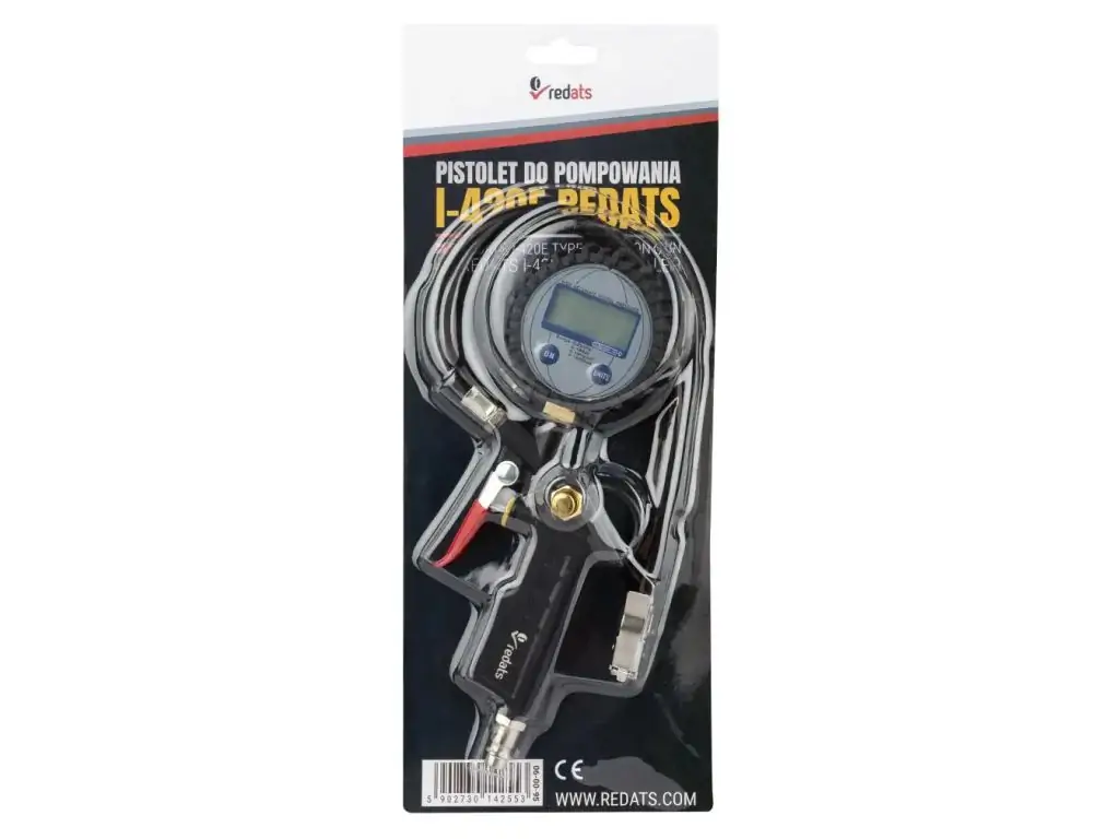 Пневмопістолет для накачування шин REDATS I-420E призначений для швидкого, точного і зручного контролю тиску повітря у шинах та їх одночасного накачування. Підходить для шин легкових автомобілів і вантажного транспорту, тиск в яких не перевищує 18 Бар / 255 PSI. Можливість вибору одиниць вимірювання (PSI, Bar, кг/см², kPa) дозволяє зручно працювати з технікою різних виробників, яка використовує різні стандарти тиску, що суттєво спрощує роботу.
