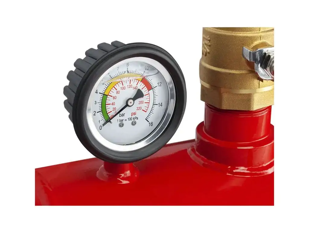 Легко читабельний манометр дає змогу точно контролювати поточний тиск, а запобіжний клапан забезпечує безпечне скидання надлишкового тиску. Вся робота повністю автоматизована - достатньо просто натиснути на важіль. Конструкція виготовлена з якісної сталі, має компактний розмір, невелику вагу і ручку для перенесення, що робить цей бустер шиномонтажний зручним і практичним.