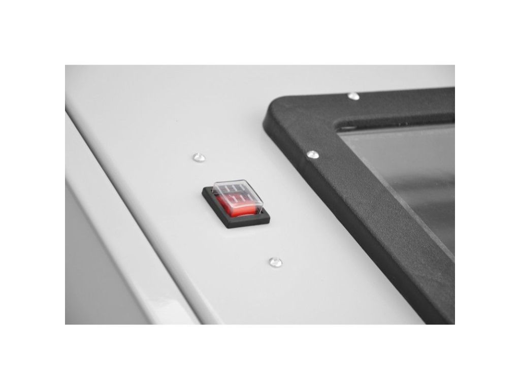 Об’єм камери 330 л і бокове завантаження дозволяють зручно обробляти довгі та громіздкі заготовки. Робочий тиск 2,76 - 5,52 Бар забезпечує оптимальну для якісного очищення силу потоку. Пістолет з 4 змінними форсунками дає змогу коригувати силу і напрямок абразивного потоку. Піскоструминний шланг розміщений у нижній частині. Збільшене оглядове вікно надає відмінний огляд робочої зони, а великий дренажний отвір дозволяє легко замінити абразив. Камера оснащена периферійними гумовими ущільнювачами, системою відводу пилу і фільтром, який ефективно вловлює і утримує частинки пилу. На нашому сайті ви можете купити цю та інші високоякісні піскоструминні камери в Україні з доставкою та гарантією 12 місяців.