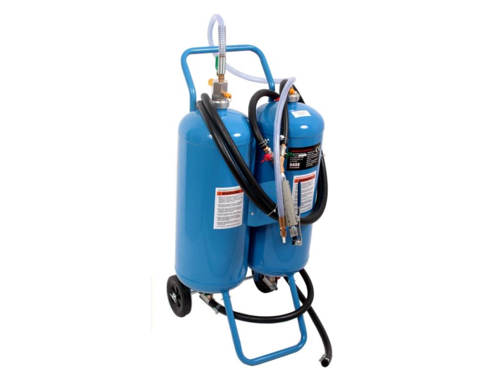 Апарат має 2 окремих баки об’ємом 25 л для кожного виду очищення. Перемикання режимів швидке і легке за допомогою розміщених на пістолеті клапанів. Витрата повітря - 400-800 л/хв, робочий тиск - 6-8 Бар. Міцна сталева конструкція зі стійкою підставкою, 2 колесами і ручкою для переміщення зручна у використанні і довговічна, завдяки чому цей універсальний піскоструй надійно служитиме тривалий час.