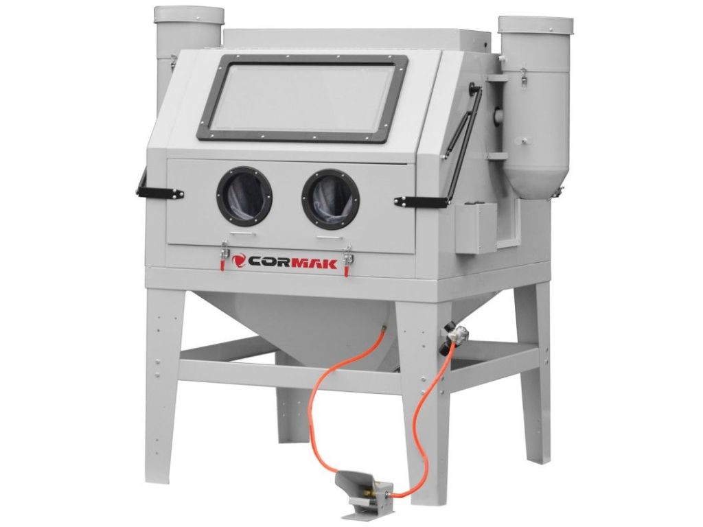 Робочий тиск камери становить 4-8 Бар, для обробки можна використовувати різні типи абразивних матеріалів. Ефективна система пиловидалення з циклонним фільтром підтримує чистоту робочого місця і оптимальну видимість робочої зони. Конструкція камери виготовлена з високоякісних матеріалів і характеризується високою міцністю та стійкістю. Зважаючи на всі переваги, ця двопостова піскоструминна камера буде ідеальним вибором для професійних майстерень і виробництв.