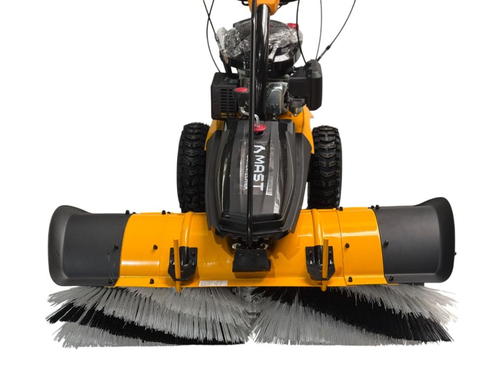 Підмітальна машина MAST Gartentechnik MT-KM1000 3 в 1 - це універсальна техніка для прибирання сміття, піску, ґрунту, опалого листя, невеликого шару свіжого снігу та снігової каші. Оснащена обертовою циліндричною щіткою з міцним поліпропіленовим ворсом шириною 100 см, яка має можливість повороту та регулюється по висоті. Захисні бічні кожухи спрямовують сміття вперед або вбік. 4-тактний бензиновий двигун LONCIN LC1P70FC забезпечує ефективну роботу з важким сміттям і снігом та повну автономність машини. Окремі приводи на колеса та обертання щітки підвищують зручність роботи та якість прибирання.