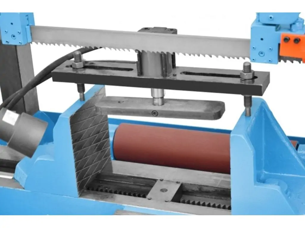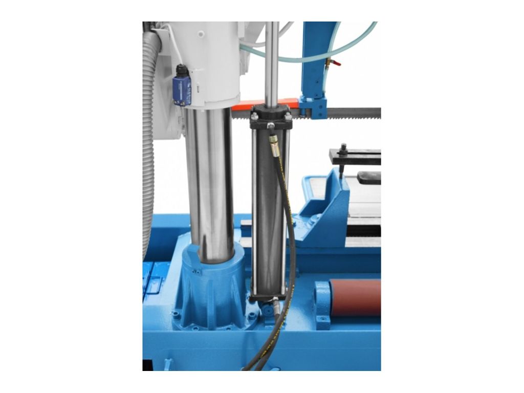 Подача значною мірою контролюється гідравлічним дросельним клапаном. Регульована сила тиску пилки на матеріал запобігає навантаженню стрічки, тим самим продовжуючи термін її служби.